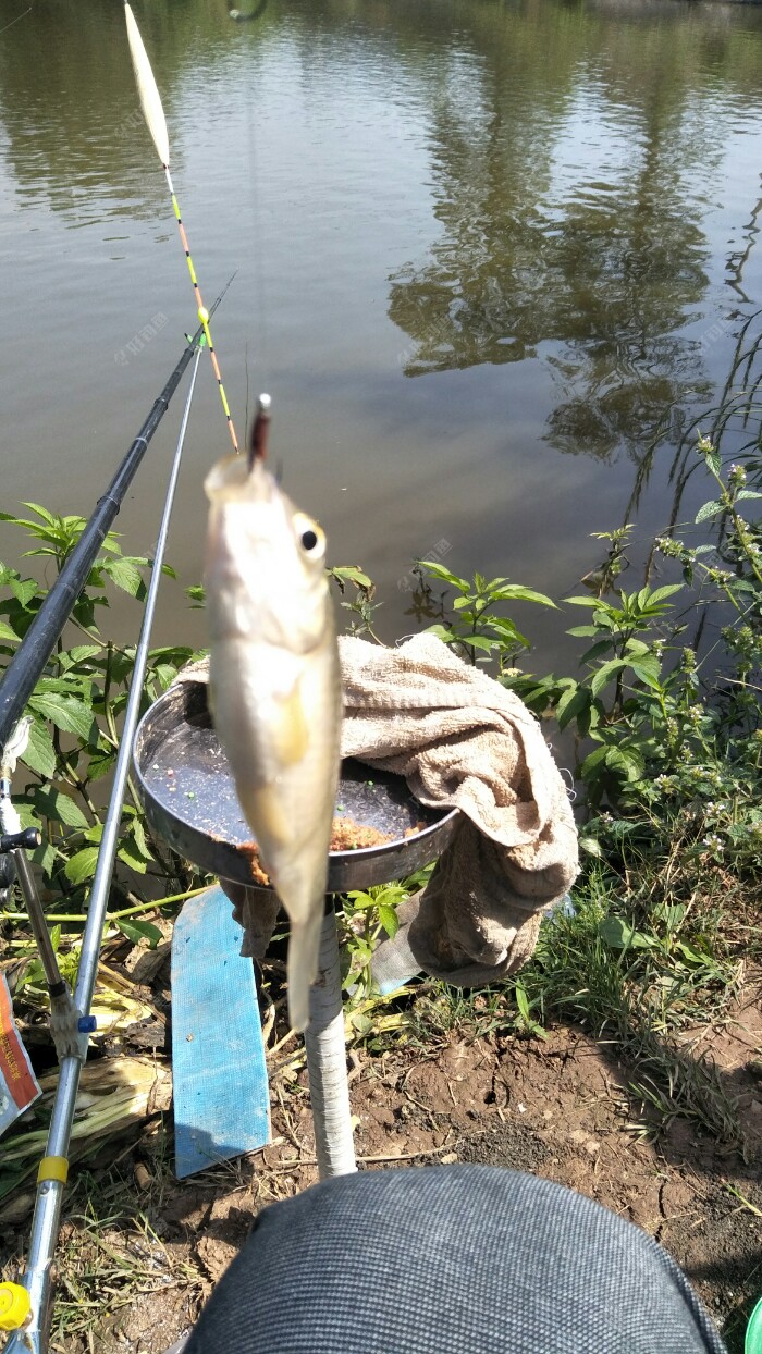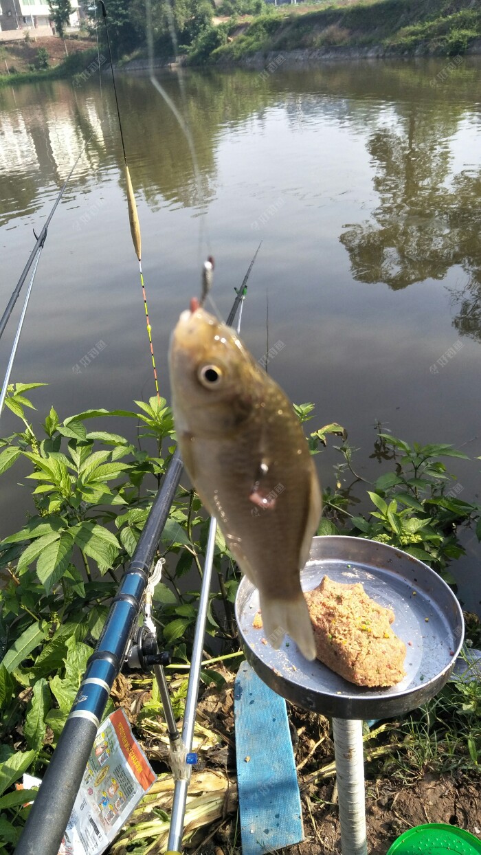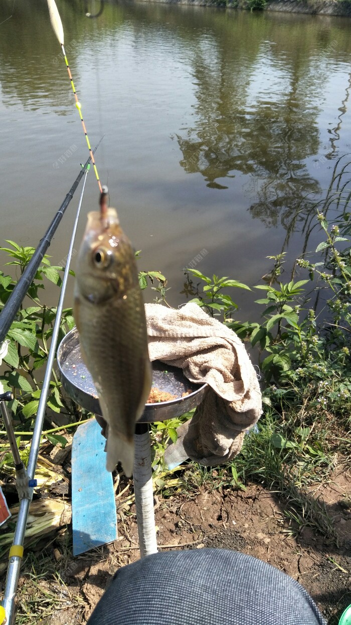 一切准备工作就绪,于是抽杆打频率,当然为了聚鱼,饵料一下水就有抢着吃,吃口很像鲫鱼口,但拉了十几杆也没有,气得我不要不要的,于是老规矩,一杆蚯蚓,一杆饵料,好不容易拉起来一条