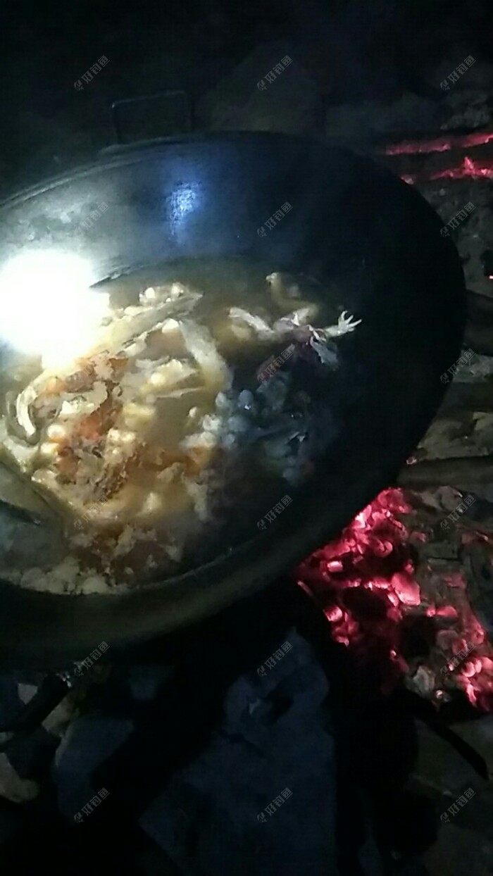 昨天跑鱼的跑鱼放鱼的放鱼上鱼的上鱼,昨晚挨夜宿江边,因为过渡不及时,回不了只能回头继续夜钓,但干粮已经吃完了,饿钓可没是个好主意,望着盆里的鱼,决定吃河边鱼,?钓点上面就有个羊栏,有人住,开车前往,就有羊栏前面一点就有灯光,下车一打招呼,原来是伐木的融水工人,生了一堂子火,吃饭家私样样齐全,主要是火堂上还有一大串烟肉,那个饿呀,赶紧说明来由,人家也好热情,发了一圈烟点上,就告诉我们用什么煮菜,去哪洗菜,重要的是,他们还剩有不少的饭,够我们三条排吃个饱了,不说了,开工,还饿着呢,山里晚上冷,不吃更冷,菜做到一半,还听到田鸡叫,扛起头灯顺着声音找,其它的跑草里了,只有一个跳水里躲着,就是它了,又多了一道菜,当然是一锅煮了,吃得个爽,吃完道别,留了点钱给人家,就不打扰人家抱老婆睡觉了,去哪,继续钓吧,到点支完竿,守到十二点,一点动静没有,挂饼料玉米,车上睡起,一觉到了五点,昨晚就说好了,早上再搞连鱼,我海竿昨天都不好用,树枝太多,今天改手竿挂爆炸钩,没试过吧你们,果然不久中了条连子,三斤多,忘了告诉你们,那连子肉好嫩,?因为还要做事,八点就收了!读书时候写作文没写过这么多,?不写了,上图!