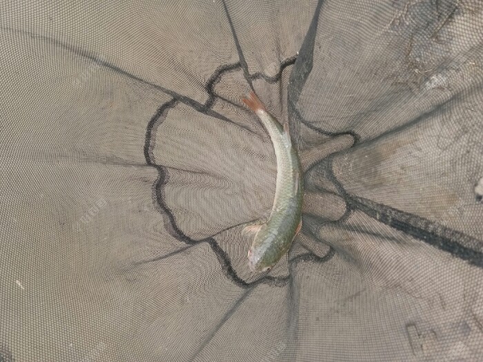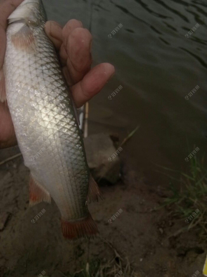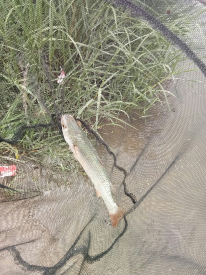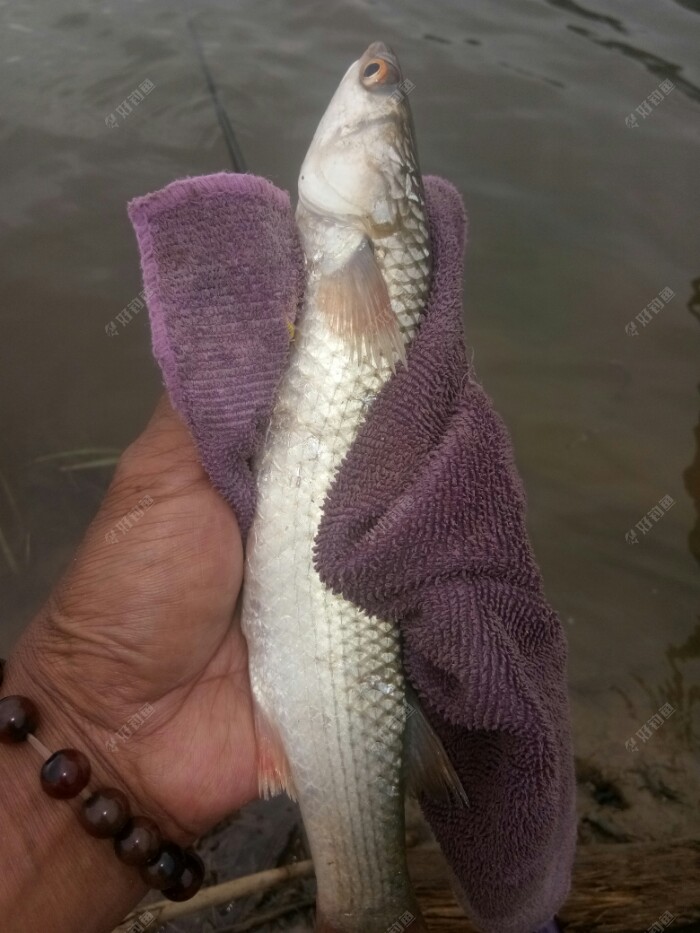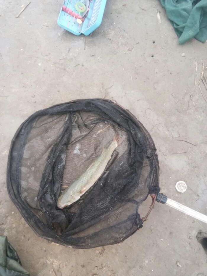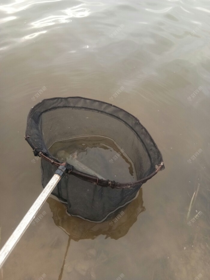 就在我还在犹豫要不要再坚守一回时,四点半左右,随着风儿的刮起,原先平静的水面上掀起了不是太大的波浪。因为鲻鱼无风静浪基本上是不咬钩的。突然美丽的浮漂,一个有力的下顿。这是鲻鱼咬钩时一个最标准的漂讯。我抓住这一千载难逢的时机,立马扬竿刺鱼,刺中后,虽然它极力挣脱,左窜右跑,我对它太熟悉了,太了解它了,不给它有喘气的机会,必须一招毙命。然后直接随着空中大弯弓的秒现,直接把它从水里飞入了抄网。 来之不易呀,难得,难得,幸会,幸会。哈哈