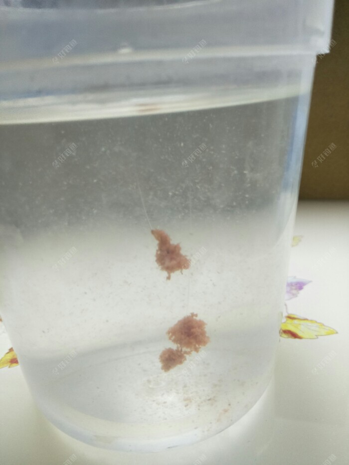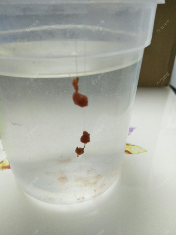 我用了个塑料盒装满水看一下饵料的入水状态,刚入水就开始走雾化,而且雾化效果一直持续,后面两张是十多秒和半分钟的效果。