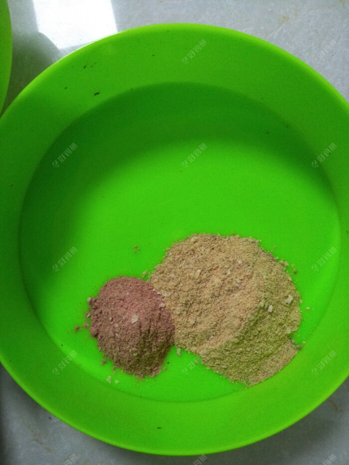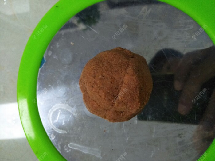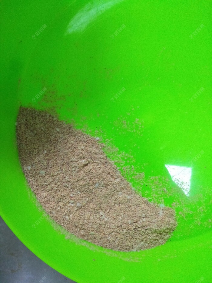 搅拌均匀,饵料粗细适中,闻着味道香中稍稍有点腥味!加水1:1搅拌均匀静置五分钟!团成团。
