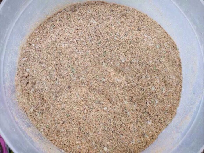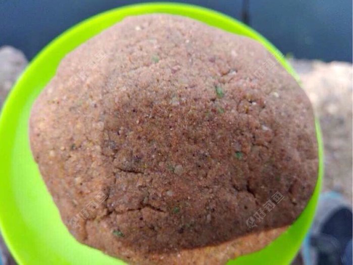 饵水比1:1,醒十分钟,揑成饱满的饵团! 目标鱼是鲫鱼,所以在和饵前已经打下了自己泡的酒米。