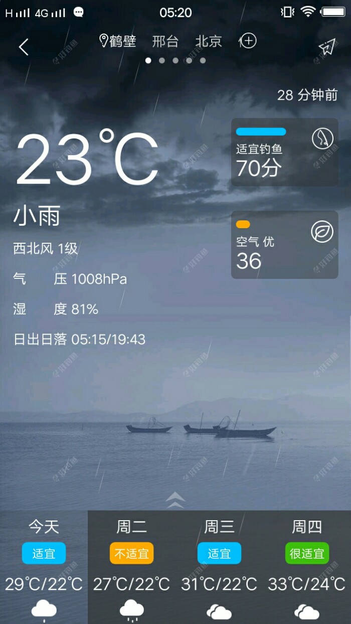 今天天气不热,感觉钓鱼会很爽。先看看天气预报