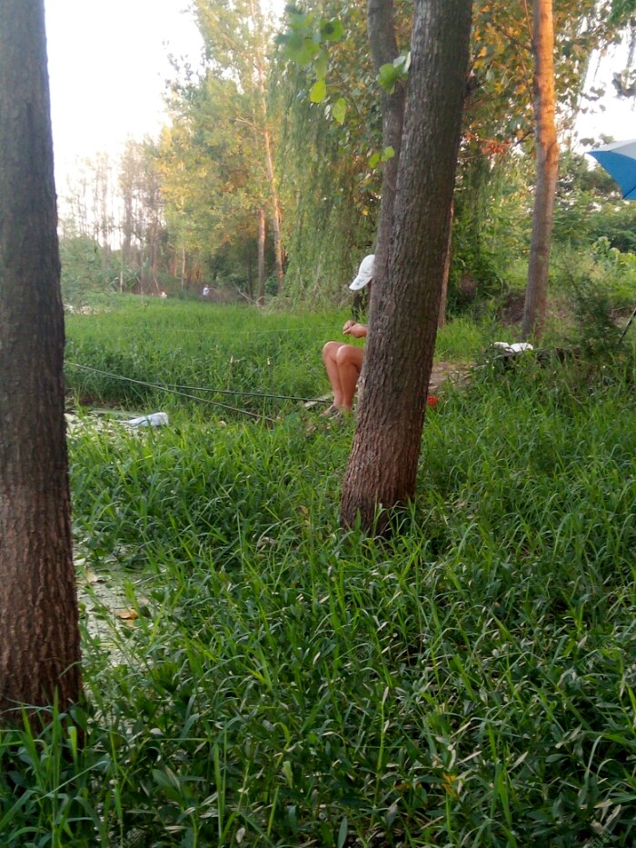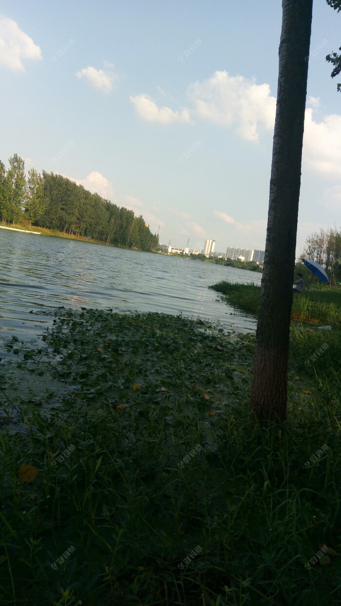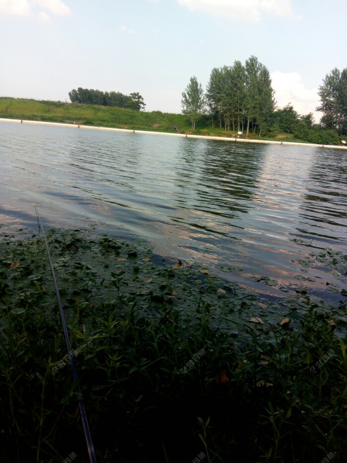 正前方的远处,也许是没有大树遮阳,根本没有钓友作钓,谁都怕热啊。以前在那个地方钓过鱼,那里水较深,水草也丰富,藏了不少的大鲫鱼大鲤鱼。有一次,不知钓到一条什么鱼,过后想应该是鲤鱼,溜了几分钟,不敢使大劲,鱼硬是往深水区钻,最后形成了拔河比赛,把子线切了。真是后悔的不得了,钓大鱼的机会不多,这次却与大鱼失之交臂,可惜可惜。如果是早晨钓,那个钓位是个不错的选择。