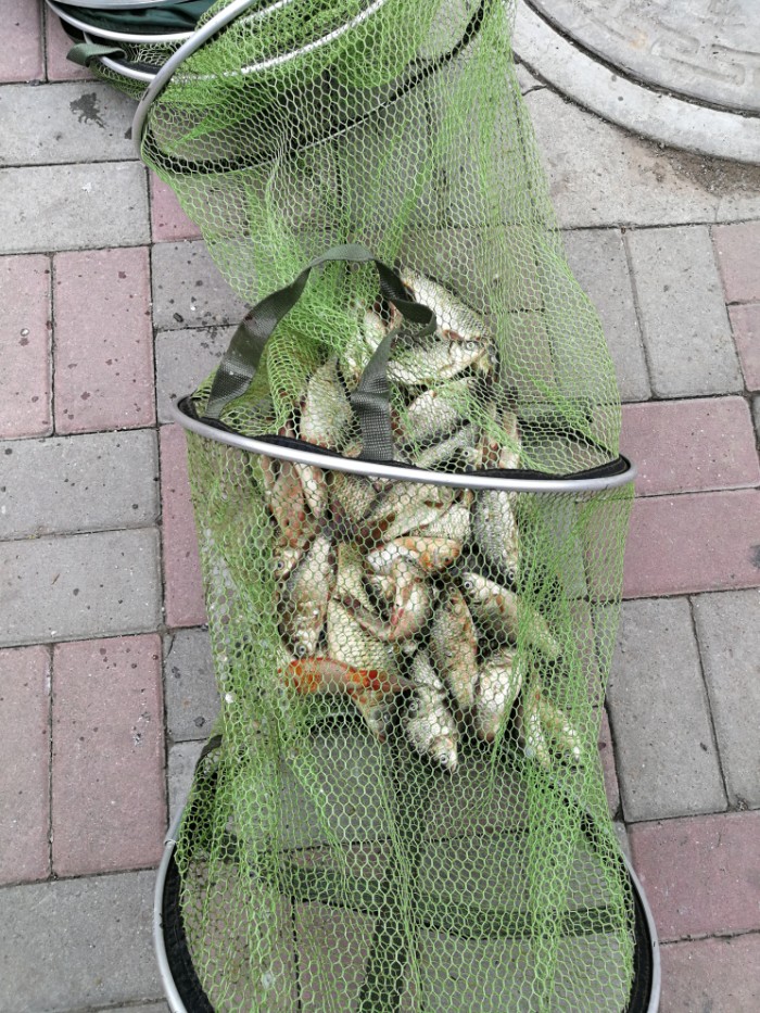 忍受不住群里钓友的一再诱惑,和一个好友直接就过去了,七十公里到达目的地!!!听说这个水库鲤鱼挺多,就用了30主线配20子线。结果屁沟没作正,钓的有点浅才两米多点,大部分都是一两多的鲫鱼,还有彩鲫也是一两多。偶尔也上几个二三两的鲤鱼。五米四的鱼竿用了多半天到下午三点的时候天阴了下来,还有雨滴落下!果断的收杆走人。