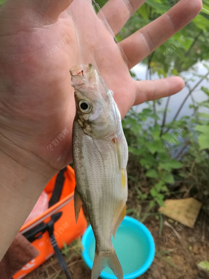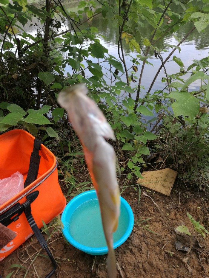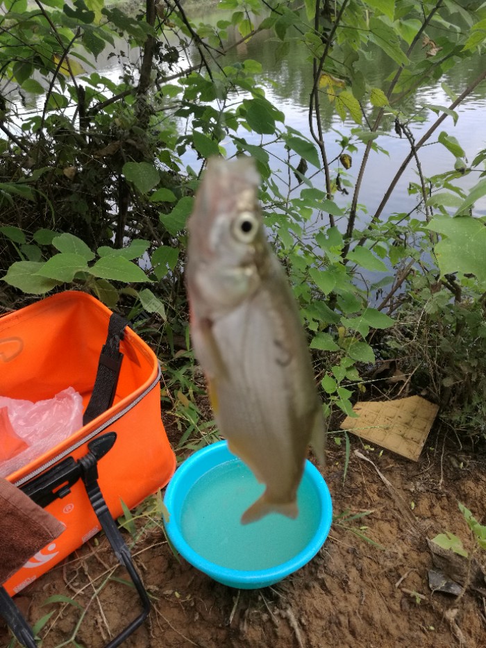 哎,个头太小了,这离米级的还差一米多么???继续抛竿,饵料到底的途中总是有截口,老是打不到鱼,这天气还真是不好钓啊,也可能是进窝的鱼不开口,就是在水里蹭线吧,突然一个黑漂,又中鱼了,虽然口不多,但吃得都挺实在,只要有口就能上鱼,可惜又是小翘嘴,不过炸了喝酒应该不错??