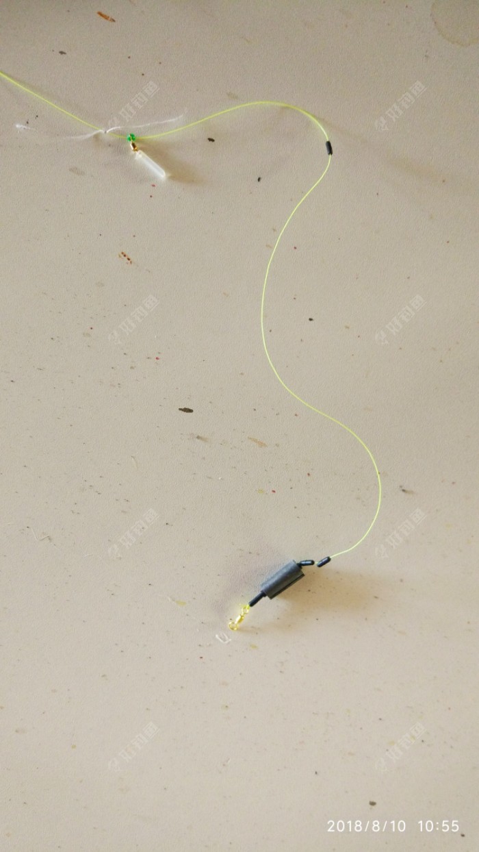 简单说明一下。首先在线上打好棉线结,留下三公分的线头,多余的剪掉。留线头的目的,如果结有点松,还可以拉紧。第二步,穿上带塑料环的漂座,因为棉线结比较小,这种漂座线孔小不容易卡。第三步,穿上漂座下定位豆。根据漂的长度,这粒太空豆距离铅座,大于漂的长度就可以了。目的是防止漂与子线缠绕。最后装上铅皮座和八字环。全部组装结束。 装备全部准备好了,下一步就是实际操作。这也是个循序渐进,慢慢熟练的过程。老铁们期待我的好鱼获吧!