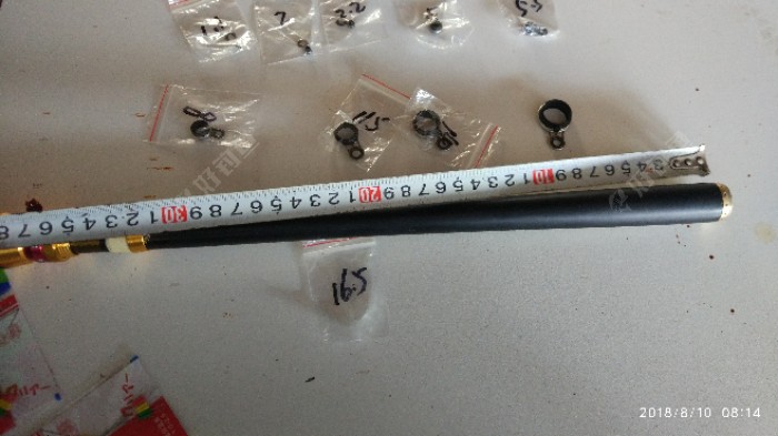考虑到受力均匀,第一节杆梢部位,加了两只活动导环,第二节加了一只。量好尺寸立马下单
