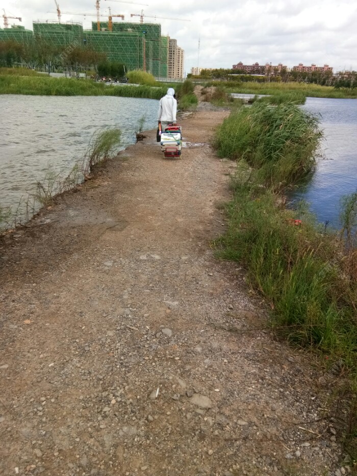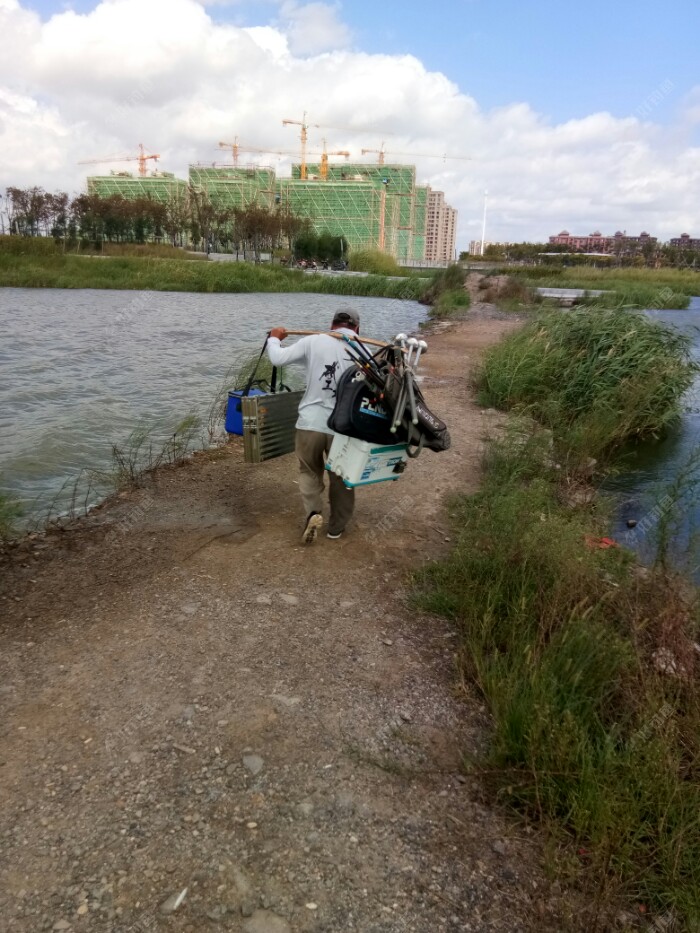 不到10点30分,先前早早来此垂钓先头大部队的钓友,往回撤当经过我身旁回去时,问了一下钓的情况,几乎都是空军,偶尔有一两位钓友钓到了仅有一两条大一点的乌头鱼吧。看,有成群结队的,有肩扛手提的,有用方便车拉着的像小学生书包一样沉重的装备,依依不舍的,收竿回家了。