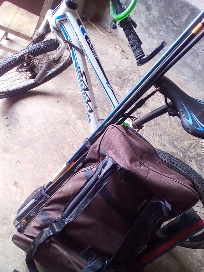 基本上这次巨物之战的软件是什都准备好了就差硬件了,那就是钓竿,钓竿我选的是一款六米二的一款软调的钓竿。基本上这次巨物之战的东东都准备好了就赶紧收拾东东出发吧。因为考虑到钓鱼的地方,离我家还是比较近的,所以就骑自行车去了。(撸起袖子加油干,拿起装备上车走)