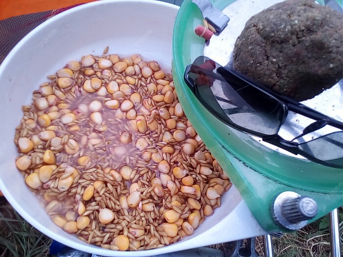最近在网上看到了一款听说非常好用的窝料,在网上评价都很不错。于是手痒就也学网上做了起来。 配料 1,未脱壳的大米 2,干玉米 3,甜酒曲一包 4,牛逼水一瓶 5,红薯膏50mL 首先将稻米和玉米放入开...