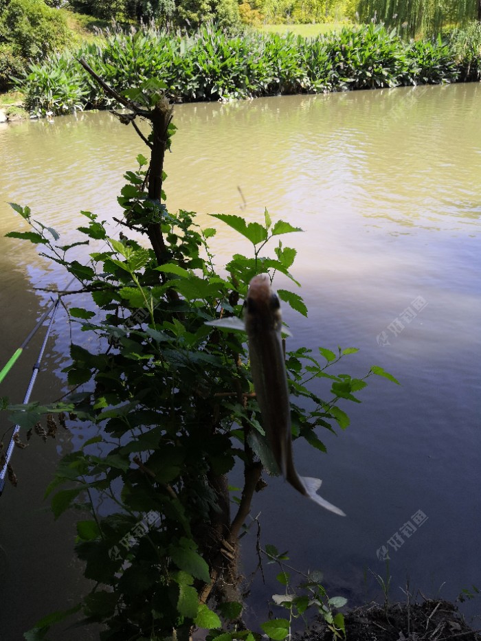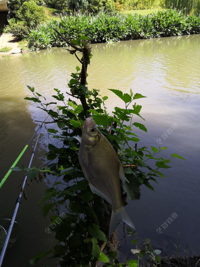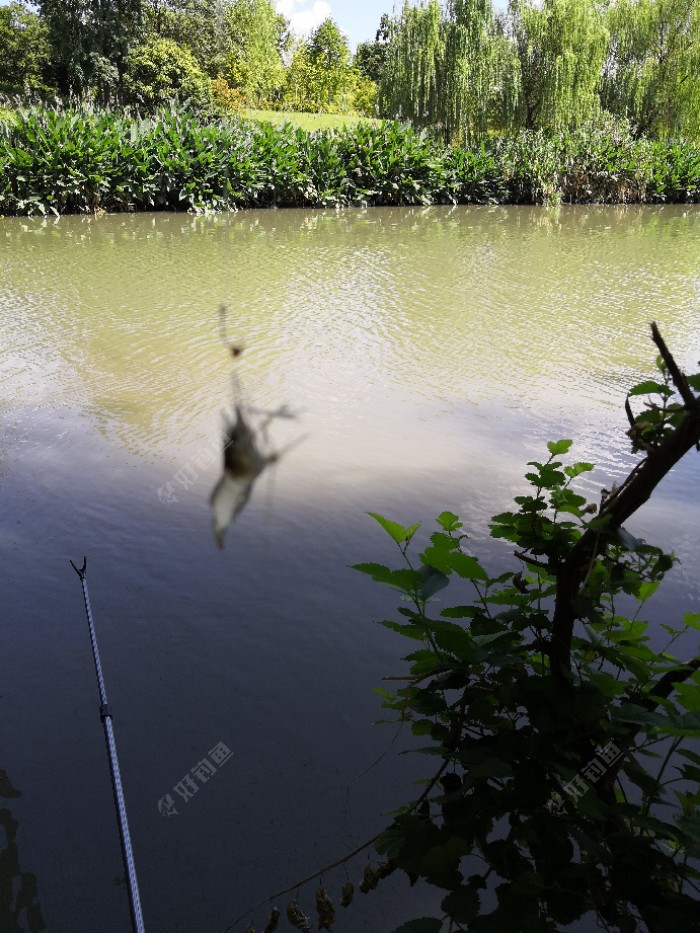 鱼喜欢有障碍的地方,人也舒服没有太阳。开始坐钓,先开始钓底,抛竿后,双钩到底了,但走水严重,浮漂会慢慢的被淹没了,没有办法只改跑铅钓法了,跑铅也就加大铅皮重量,使浮漂和铅皮不成正比,这样做是为了使双钩快速到底,穿过杂鱼层,但要将锁铅皮座的太空豆向上推,使铅皮座可以活动,准备做好后,开始抛竿,几竿之后有动作了,一抬一条鲤鱼上来了,呵呵,开门红啊。