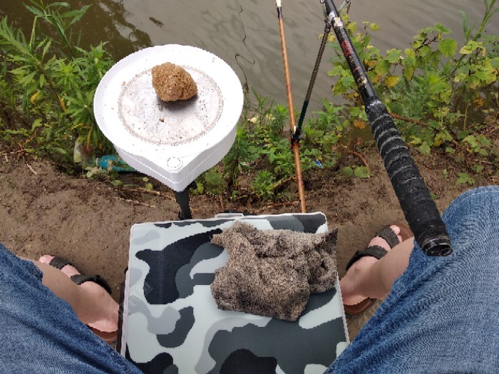 考虑到塘子里草鱼居多,鲤鱼也不少,但餐条也很多,所以选择大比重的918做基础饵,螺腥鲤做主攻饵,再用速攻2调状态。比例为918野战50%,江湖猎人螺腥鲤30%,速攻2 20%。将一半饵料打窝,另一半搓饵作钓。