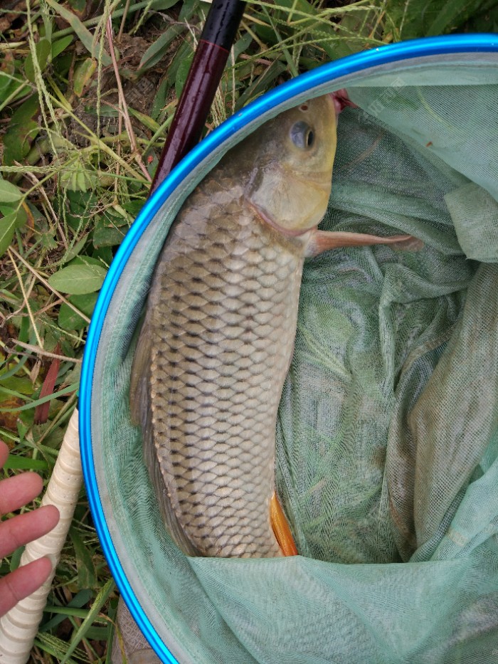 螺腥鲤给了我开门红,兴奋之情溢于言表。得瑟完继续作钓。这次先上后挂再开始。大约十竿左右,又一个稳健的黑漂,提竿,又中了一尾2斤左右的健鲤,这次是朋友以羡慕嫉妒恨的眼神替我抄鱼上岸的,因为他到现在还在玩餐条呢。