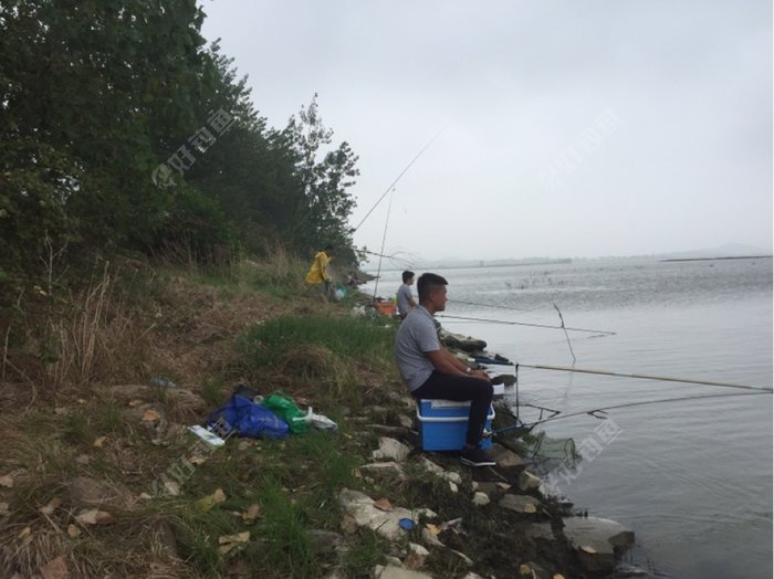一切准备就绪,开干,刚开始的时候,我玩了一番串钩,效果不是很理想,有口,却一直打不到。 此处是菜子湖一角,称为车富岛,前来的钓友络绎不绝。上午来的钓友真不少,鱼获都很是一般,甚至有不少是空军的。