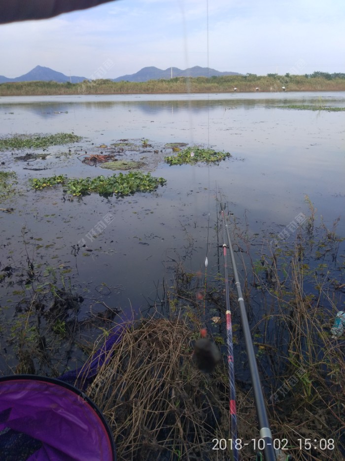 就在我们上鱼正兴时,风向水草不做美。一大堆水草漂到我的窝点上,真是让人郁闷。只好停下坐钓,等待水草赶快过去。可是一片水草过去,又跟随一波而来。