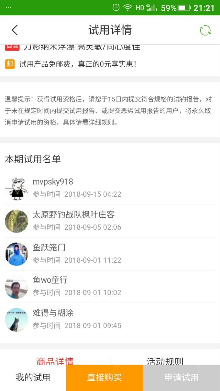 一看所试用的钓友都是老朋友了,在此也恭喜朋友们。