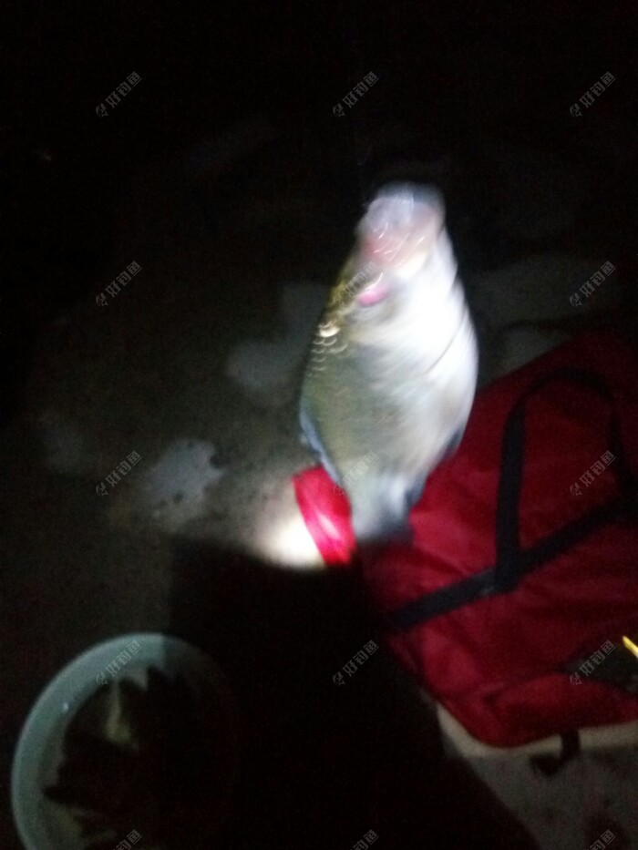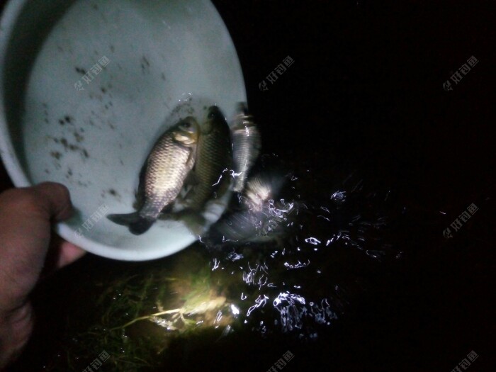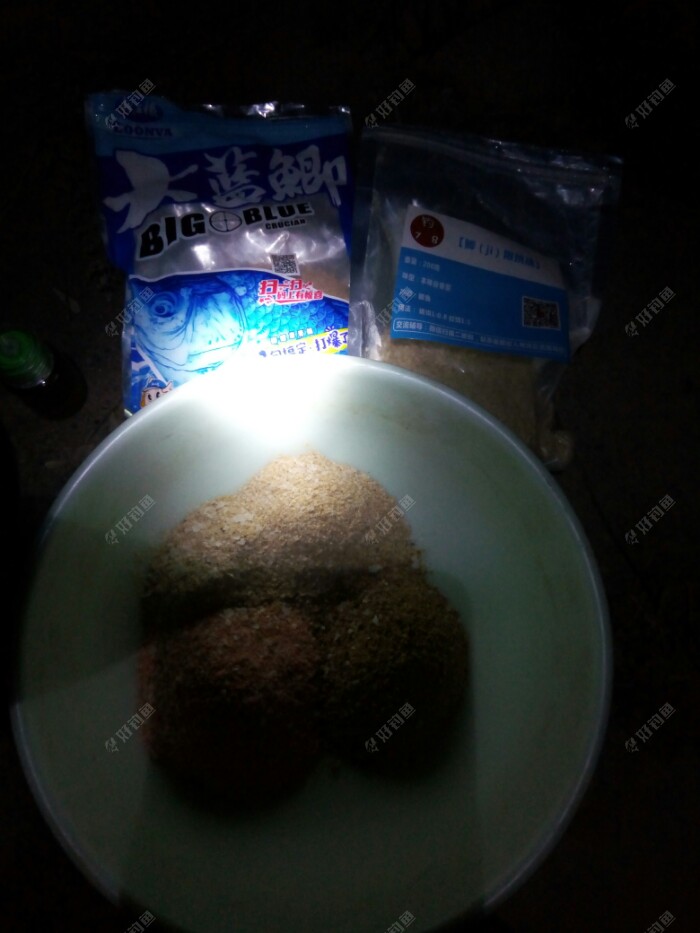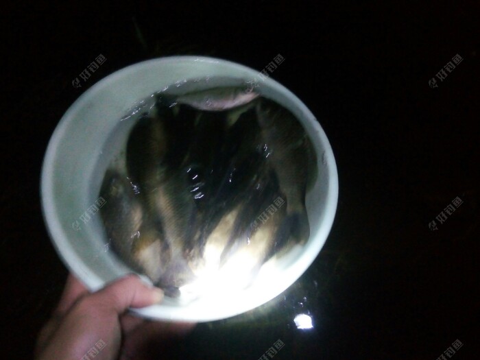又上了几条后,旁边的钓友发现了我的鱼获,过来问我钓了多少了,我说都在盆里,他打开头灯,呀,不小啊,也不少,我们那边漂都不动,又问我用什么饵,我告诉他,用搓饵钓底,他又问,用拉饵不好吗?我回答他到,鱼口慢时还是搓饵好,搓饵到底能做窝,拉饵适合鱼口好的时候,他也同意我的说法,他看着我钓了两条就回他的地方钓去了,他刚走,右边的钓友也过来了,同样的问题,同样的解答,他说他用蚯蚓钓了两条后就再也没钓上来。 他眼瞅着我又上两条后,说还是你技术好,随后也回他那里钓了。