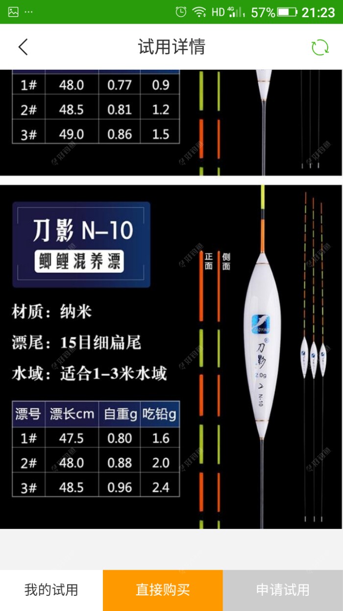 这是我选的试钓浮漂,刀影N10套装的3号浮漂。