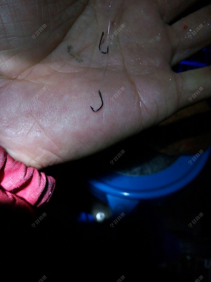 再次抛竿入水,等待着美丽的小鱼。 看见漂在往下走,露出水面三目的漂稳稳当当的快全入水了,赶快提杆,手里传来一股大力,手往上举,杆身成了一个圆弧,刚想站起来,就觉得手里一轻,钩尖往上一弹,鱼脱钩了,跑了。 拿回来一看,原来是把钩拉直了,原来是破钩啊,这是我钓鱼时捡的一板小钩。 可惜了,跑的永远是大鱼。