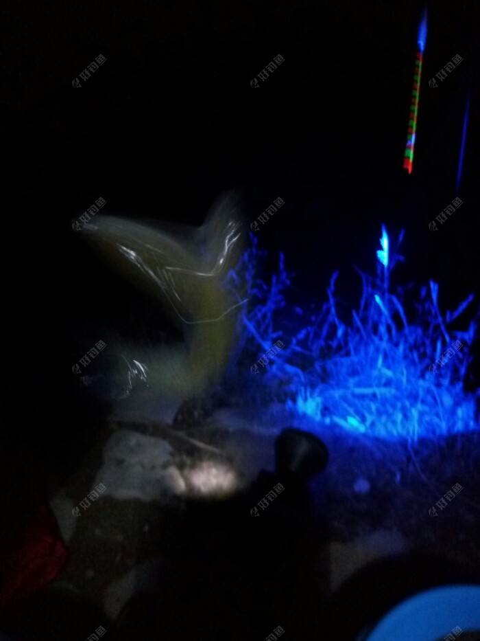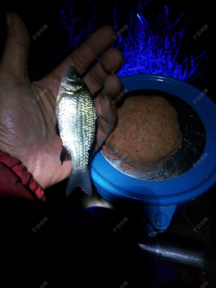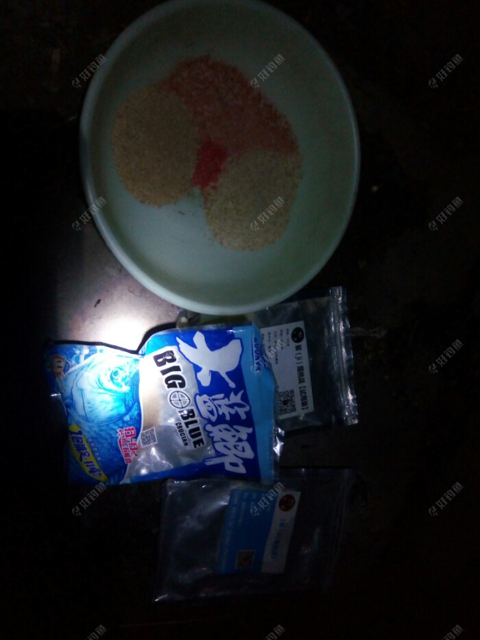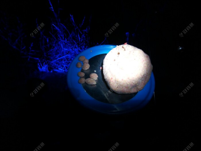 先开饵,今天重新开制一饵试试。 大蓝鲫百分之三十,奶香鲫百分之三十,腥味鲫百分之二十,再加一点自己的酒米,均匀搅拌好后,又加水,加了四滴麝香酒。 今天加水加到饵水比为1:0.9,准备一开始搓饵做钓,如果鱼情好,随时改变战略,改成拉饵。 之后的支杆,架钓椅,点夜光灯,打洗手水,坐等醒好饵料。 杆用5.4米,1.5+0.6的线主,伊势尼3#钩,今天做钓调目是调四钓二,想主抓下顿试试。 等醒好后,搓大饵一连抛了十几杆,隐隐约约看见漂左右轻微摆动,可就是不见鱼儿吃一口。 没口就和群里的钓友聊天,还开玩笑说今天鱼儿都旅游完了,都回家去了,呵呵。