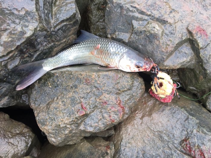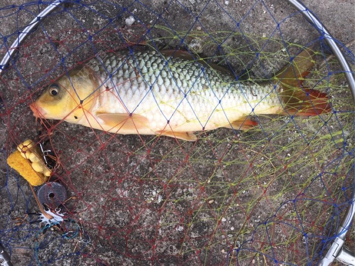 今天等第一条开杆鱼时间有点长,整整一个小时,又突然飘起小雨,心有点凉凉……还好麦鲮来报到了: