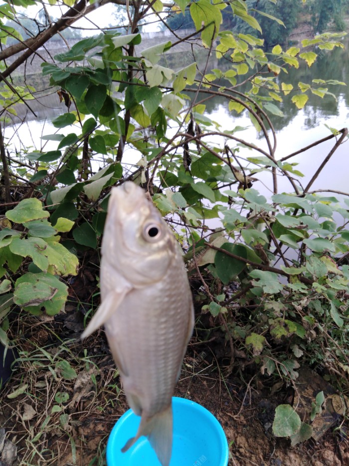 赶紧牵出我的电马儿,驼上装备,赶紧出发,到了钓点准备好家伙,接近3点,按以前的规律,这个时候正好是上鱼的时候,看来是来对了??还是打点我醪糟味的酒米做个窝子先,以前就是用这个神器取得好鱼获的,刚来,鱼没有进窝,先搓饵钓一下,看看鱼情怎么样~顺便看看这次神器能不能奏效???,调漂过程略去,相信大神们都会,稍微钓顿点,不过这次给了我一个下马威,半个小时定海神针,不过我趁这个时候反复的,仔细的观察着浮漂,一个字,非常醒目,只要不是视网膜脱落,应该都能看得清楚,没办法,浮漂醒目就是这么任性????我的个乖乖,这怎么办呢,一时间我找不到北,小风呼呼的吹着,连小鱼都没太多反应,这是怎么回事呢,难道这天气鱼也上浮了?? 实践是检验真理的唯一标准,赶紧换拉饵作钓,还可以顺便诱鱼,果不其然,抛满竿,浮漂平稳下降,估计离底20公分的样子,一个清晰小顿口,提竿,中鱼了,这一尾鱼可了不得,放大50倍,那简直跟巨青一样啊???这时候必须夸一下浮漂,动作清晰干脆,灵敏度港港的?