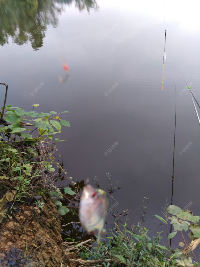 钓了差不多2个小时,乱口稍微少一些了,钓上来了鲫鱼也多起来了,但是总的鱼口比不上入秋不久的时候,这时候又该做一下调整了,乱口少了,说明进窝的鲫鱼多一些了,搓小饵,浮漂回原位,钓底,主攻鲫鱼??虽然半路还是有小鱼闹,但起码能保证饵能到底,换搓饵第3竿,到底后两三口小碎口,一个下顿半目,动作非常清晰,提竿,既然还有意外收获???