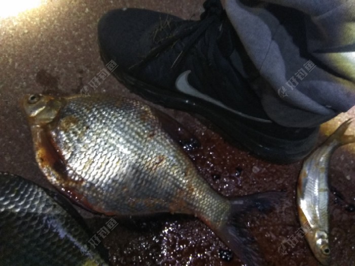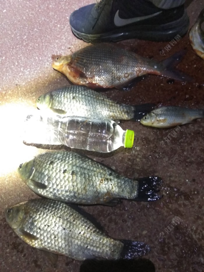 线组搭配1.2/0.6/7号袖,因风大调跑铅钓一两目,下午温度降温坐钓两三小时没有一口收杆回家,心里这个不爽啊! 吃完晚饭后心里犹如一万尼玛奔腾,哈哈要不去谭家庄玩玩? 嗯不犹豫马上开车走此时已是晚上九点半,到钓点正好晚十点钟。知道钓点鲫鱼个体大所以线组选用1.5/0.8/7号袖,晚上不闹鱼所以钓灵敏高些调五钓一二目,选用三米九的杆子。 这个季节鱼喜腥所以开饵以腥为主香为辅助,为了更好留鱼滴了三滴麝香王,加百分十的拉丝粉。 水比1.1.2拉饵加水快速打散静置十分钟后,一个方向打五六下成团,不可反复揉打这样拉丝粉会被打死拉饵不饱满更不会雾化。 话转正题!找底调漂水深水深两米多因为水面大心里知道发窝肯定慢,对策是打频率速度把窝给拉出来用最短的时间把鱼诱进窝。 拉窝大概半小时后看见第一口两目一个大顿直接黑漂打杆空枪,心想有戏鱼进窝了,继续狂抽拉饵十分钟后鱼漂两目慢慢下沉几乎平水速度打杆又空枪,开始分析正常鱼口情况下黑漂顿口肯定有鱼并且个体偏大! 若空枪三个原因1子线粗档口,2大个体鱼进窝钓的太灵鱼曾线会出现漂像,3虾口,这三种情况分析排除子线粗因为用的0.8子线。这个季节还不至于用0.6/0.4子线。应该是大个体鱼进窝曾线于是坚信自己的判断继续狂抽杆子又等了十分钟看到漂像两目一个顿到一目半放口没打,紧接着半目顶忍住没打速度一个大顿黑漂速度打杆瞬间鱼线切水声~呜~哈哈中了我擦一斤多大方鱼又称武昌鱼,哎呦爽啊! 证明判断没错大鱼进窝。 继续打频率五六分钟后又出现漂像两目漂有节奏的半目半目下沉,忍住放口哈哈没想到这个鱼能直接半目半目慢慢阴黑漂,心想肯定大个体鱼鲫鱼或者大鲤。 打杆瞬间线绷直扬杆往回一带嗯鲫鱼抄网入户我去斤鲫一尾今年钓到最大的鲫鱼。又钓了一个小时陆陆续续钓上三四尾六七两左右大鲫,深秋季节晚上那叫冷啊!穿的保暖裤,冬天棉衣都坐不住坚持到凌晨一点手工今晚鱼获满意虽然尾数不多但是今年钓到个体最大一次很爽话不多说直接鱼获!