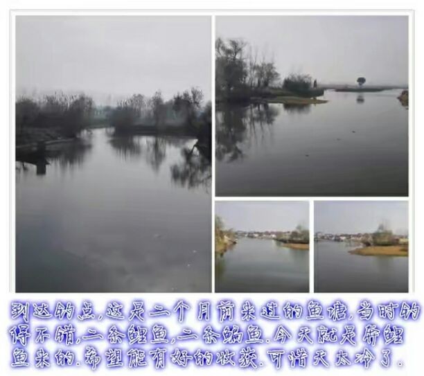 到达钓点,这是两个月前来过的鱼塘,当时钓得不错,二条鲤鱼,二条鳊鱼。今天就是奔鲤鱼来的。希望能有好的收获。可惜天太冷了。