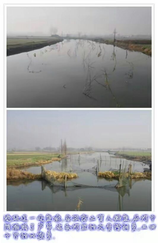 途径过一处鱼塘,老板防止有人锚鱼,在河中间插满了芦苇,这条河里的大青特别多,三四十斤的比较多,看着人眼红呀。