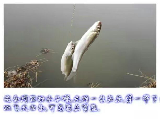 这条河里的水不深,大约一米左右,第一竿下就双飞大白条,可见窝点有鱼。