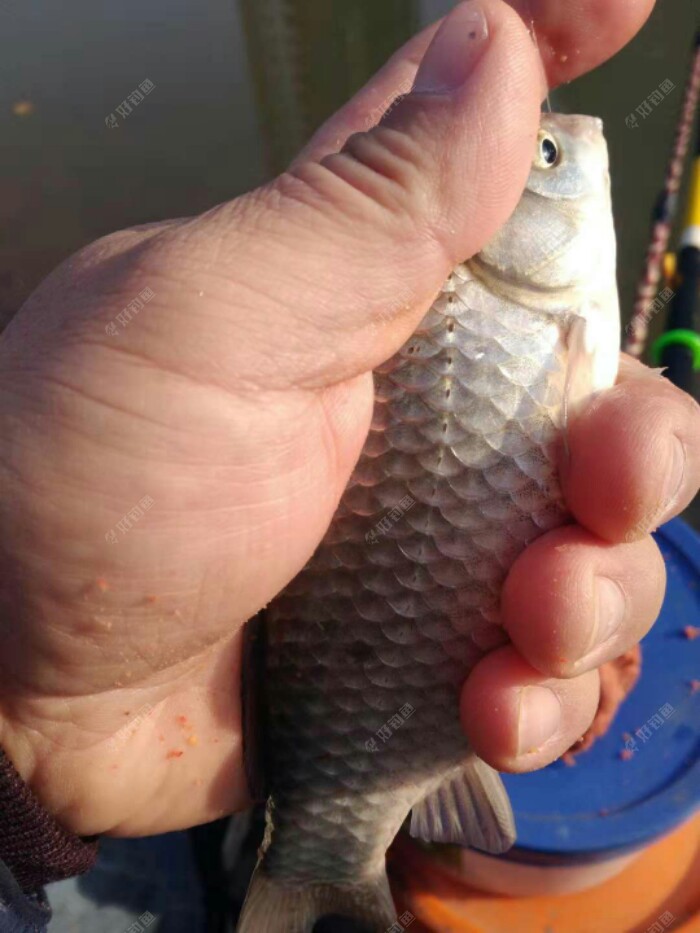 时间就这样一分一秒的过着,我的胳膊有点酸痛了,不行还是老老实实坐下吧,就近处吧,也打了窝一会了,可以休息休息胳膊,杆抛近处,有3-4分钟了,也没明显口。???,隔壁已经上了3条了。就在这时漂微微下沉1目不动,我提把。这时隔壁也上了一条。