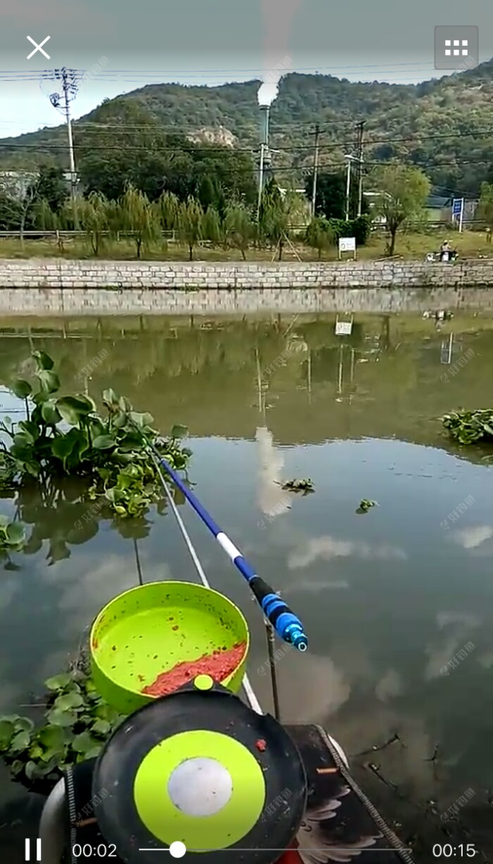 架好竿子以后,接着找底调漂,这些对我来说都不是事,小菜一碟,轻车熟路,立马搞定。我感觉现在秋季钓鱼,特别是野钓,底窝料很重要。因为随着气温的不断下降,鱼儿不爱活动了,所以我们要想法设法,引诱鱼儿聚在一起才好上钩。所以我今天购买了一种看朋友钓鱼时,聚鱼快,上鱼又多的一种酒米,然后少加已些野战蓝鲫和红虫鲫,然后用11米的大炮竿,投进窝子中的。通过这次试钓,果有其效。紧接着就是开饵料,今天我开的饵料很简单,就是野战蓝鲫配红虫鲫,3比2,然后加入适量的水就大功告成了。 就是上图拉饵盒里面的。 好了,不多说了。请看详细大板鲫连杆模式垂钓过程和鱼获吧