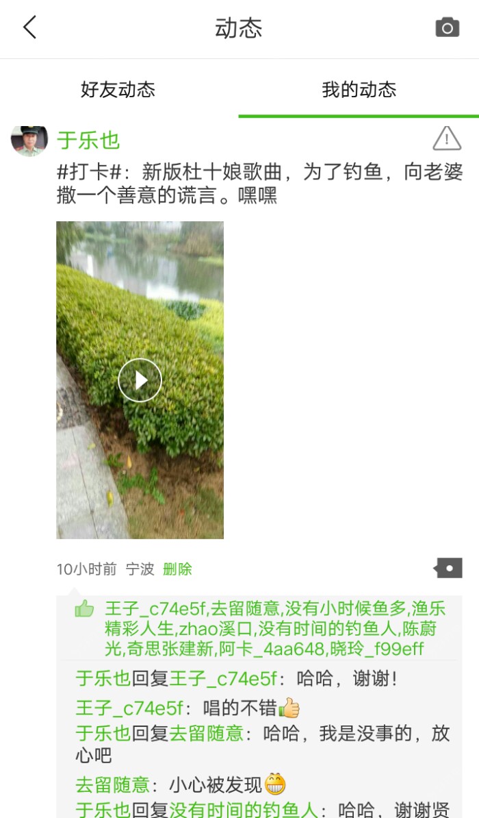 说起朝思暮想,魂飞梦绕的钓鱼,是我想起了,我刚发在动态上,改编的杜十娘曲子里的一段歌【为了钓鱼】 为了钓鱼,我对老婆撒谎 为了钓鱼,我说自己很忙 很久不钓,我已感到手痒 只想痛痛快快,大干一场 来到了神往的地方 简直就是垂钓的天堂 就像置身在梦里的水乡 此时哪里顾得上婆娘 啊,啊…… 哈哈,有时间请钓友,在动态里听听我这首,带着醇厚的感情色彩,五音不全的“好声音”吧!看看有没有同感的,嘿嘿。