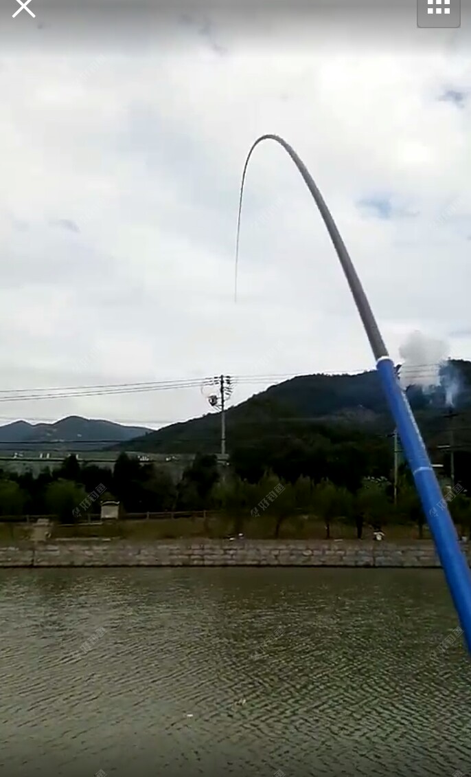 我今天用的是一支刚收到,也是刚买的5.7m的龙纹鲤竿子。这款杆子软硬适中,正合我意,很顺手,非常喜欢。看看漂亮吧