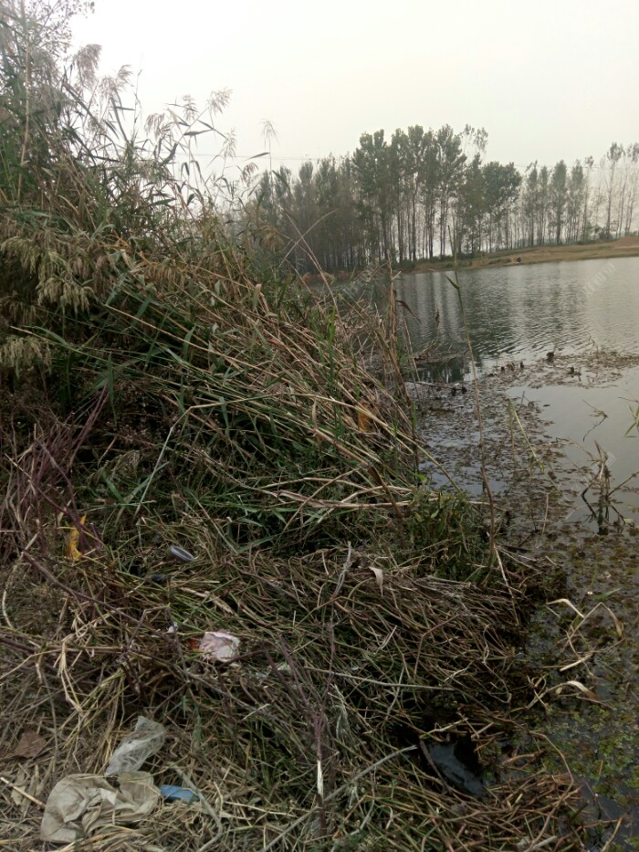 我钓点的左边,一丛浓密的芦苇,挨着芦苇的深水区是一些水草,觉得藏有鱼。我就贴着水草打了窝子,开始施钓。微风吹拂,河面漾起层层波浪,水很干净,水面也干净。