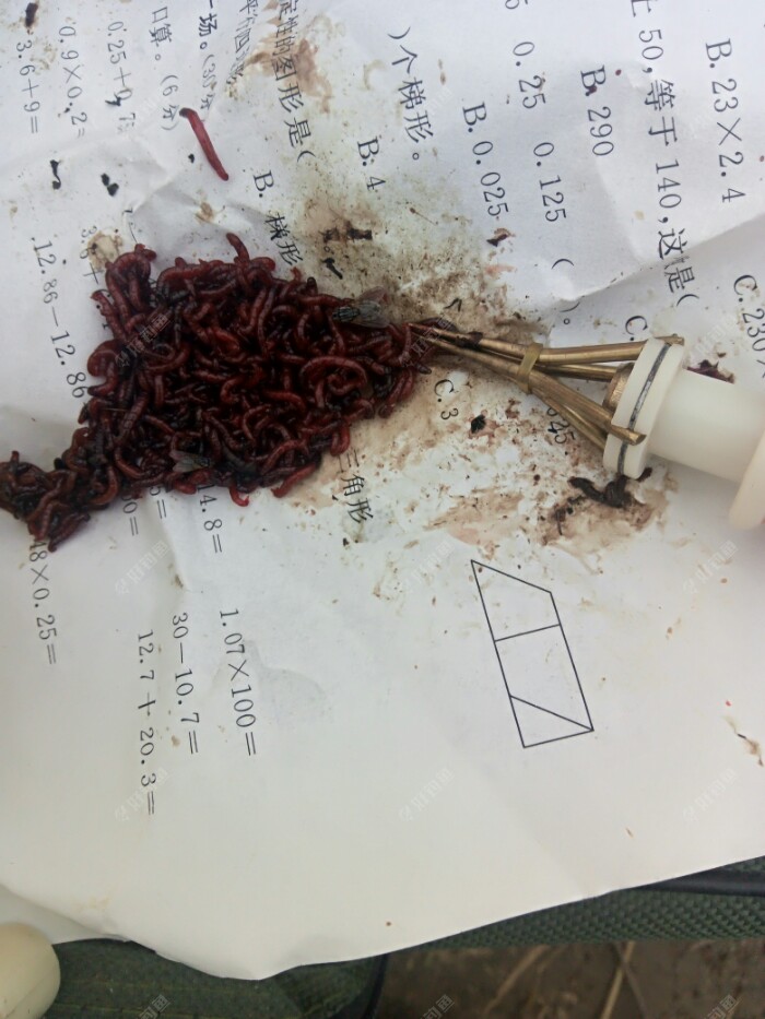 垂钓离不开红虫,它是鱼儿最喜欢的饵料,钓鱼必备。我想有个好收获,这也得准备着。只是,红虫的质量不好,颜色差,活的不精神,死的更难用,为了图个近,只能作罢。