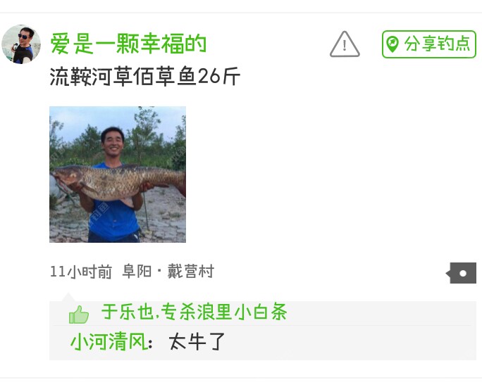 这是从网上看到的,一位老乡垂钓的大草鱼,二十多斤,真是羡慕。此鱼获不好求,空军会常有。能在每个好天气,过一次钓鱼的瘾,空军也是一种获得,引发对钓鱼的思所。