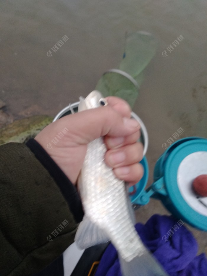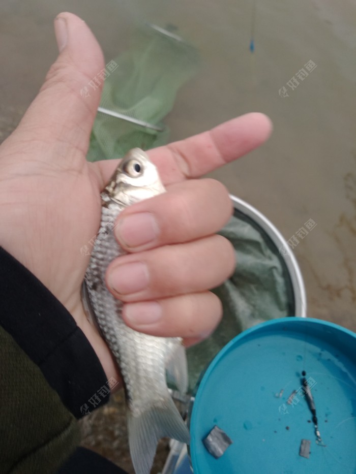 针对以上自我感觉良好的情况,我两点左右,一个人来到江边,灰蒙蒙的天,寒风凛冽,独自挥杆起舞,调好漂,串了条蚯蚓,饵料还没来得及和,第二口就是鲫鱼一尾,接着鳑鲏一尾。