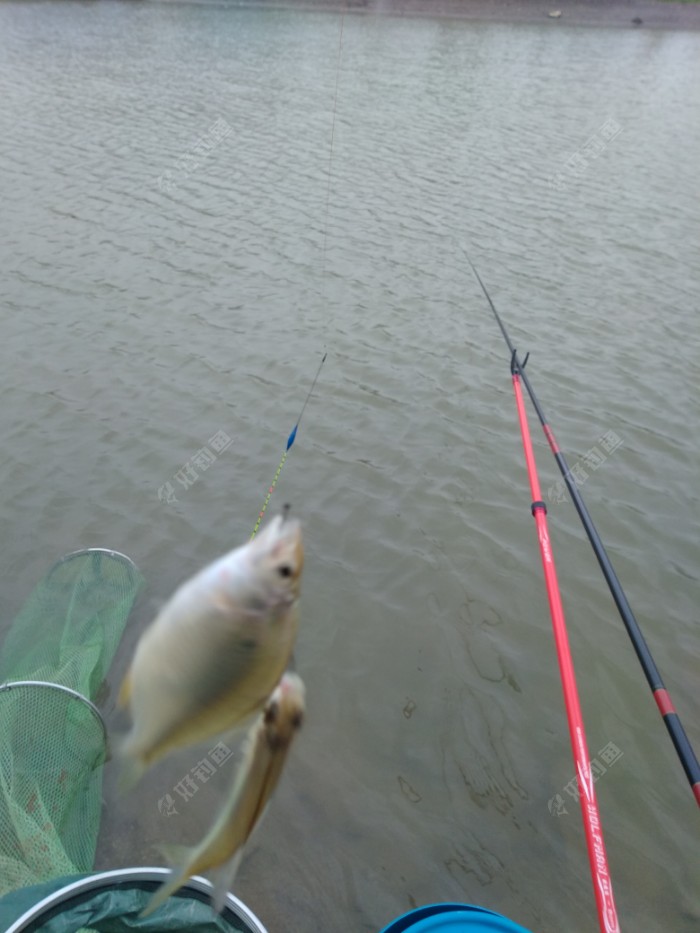 我撒了三把酒米,因为风大的缘由,没一下打准窝里,因风大,抛竿也一半以上抛不到位,就这样照样不影响鱼口,鳑鲏一波,饵料入水到位,就有口,漂相非常清晰。