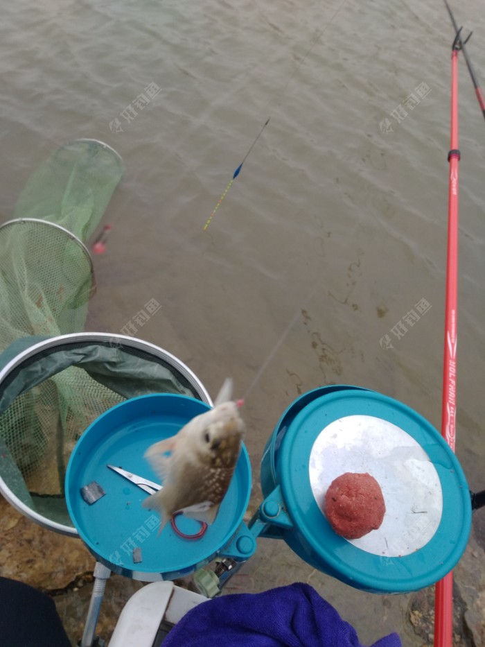 我单开红虫鲫加了20%的拉丝粉,用的是4米5的杆,大线1.0,用的是阴天漂小号。抽了几杆之后,发现这鱼不吃蚯蚓,反而爱吃饵料,我就改拉饵钓底。