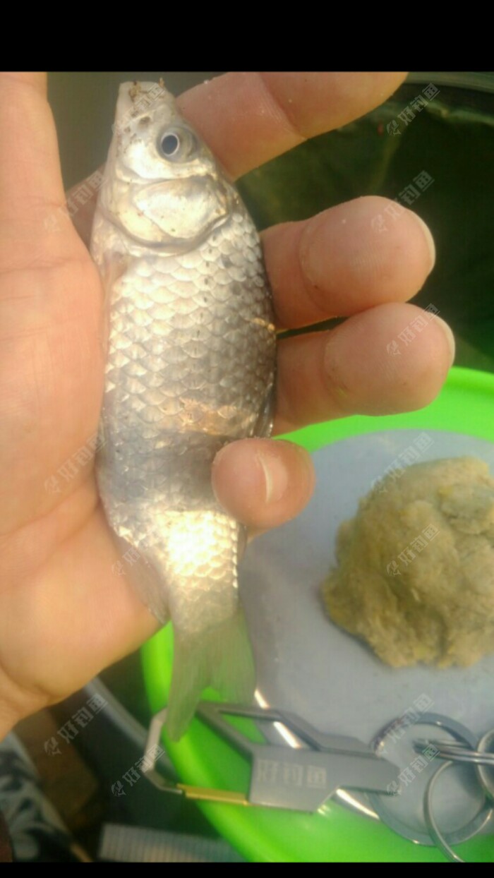 这个时候第一条目标鱼已经是出现了。看来今天这个时间断选择了这个钓位还是正确的,至少现在上鱼的时间比昨天快了很多,要保持到收竿的话,那鱼获,你就猜吧!