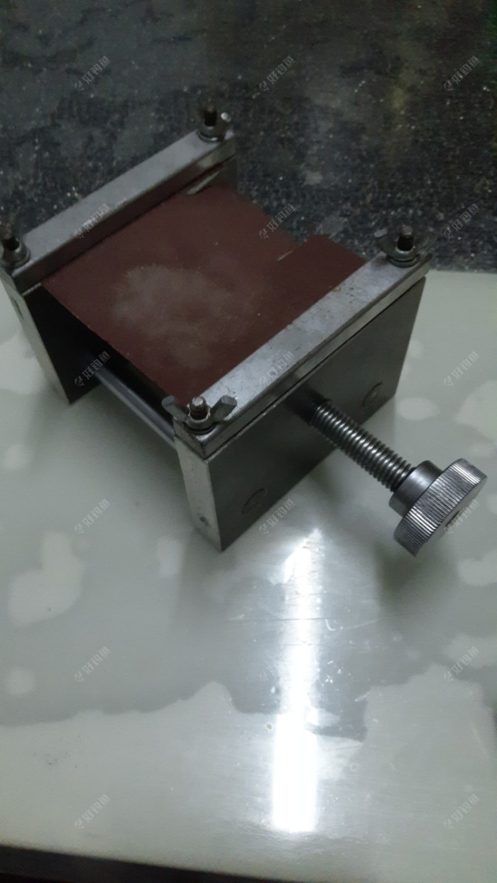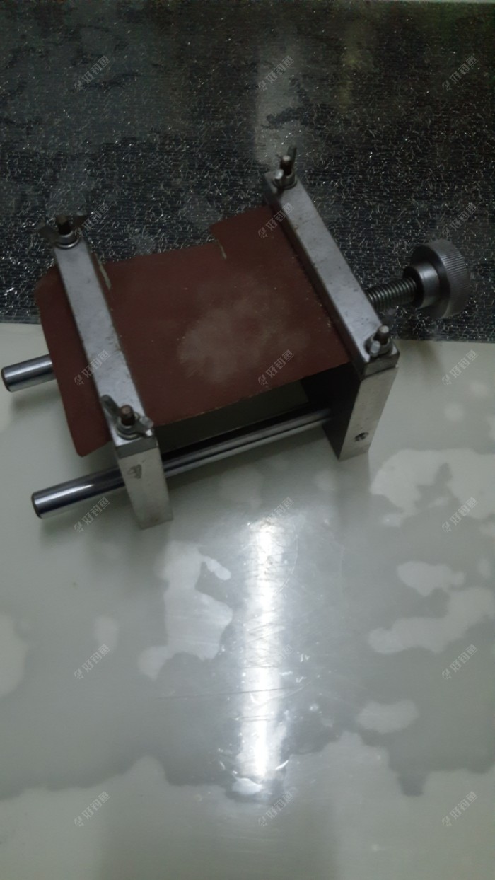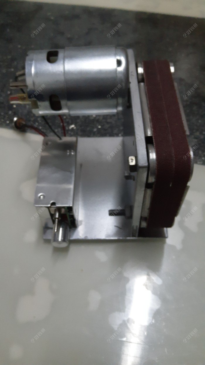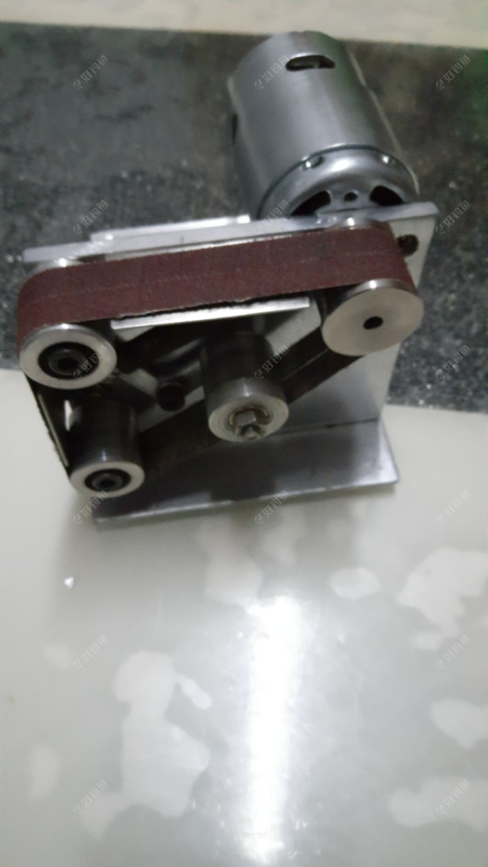 第一个做的是这个砂子架,切割好的芦苇边缘有的时候需要用砂子稍微打磨下,开始用手绷着,但是由于手绷的不平,有的时候打磨过了。后来自己用木头做了一个砂子架,刚开始用的时候还不错,不过由于使用次数多了以后,砂子就会松了,不能张紧。后来参照朋友的打磨架,做了一个金属的,带张紧功能的,这下之前所有的问题都解决,使用非常方便,还非常美观。 二、砂带机