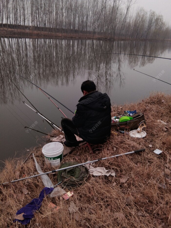 这个坐钓椅的钓友是邻村的在我群里听说出鱼了也跑来解解毒,还真没白来,也见鱼了,吵吵2019年开竿大鲫(吉)。