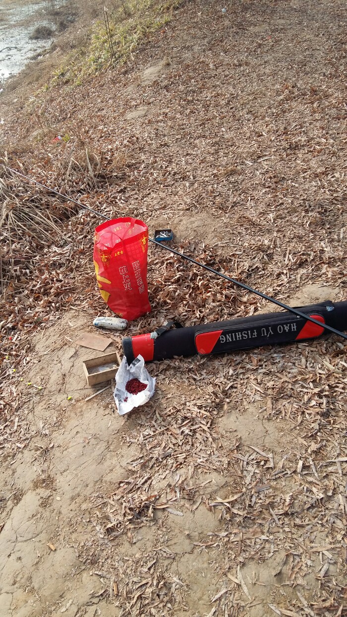 到了河边看到这个情景,我的心情也是拔凉拔凉的。冰有点薄,在冰上钓我还没有这个胆量。哈哈???O(∩_∩)O
