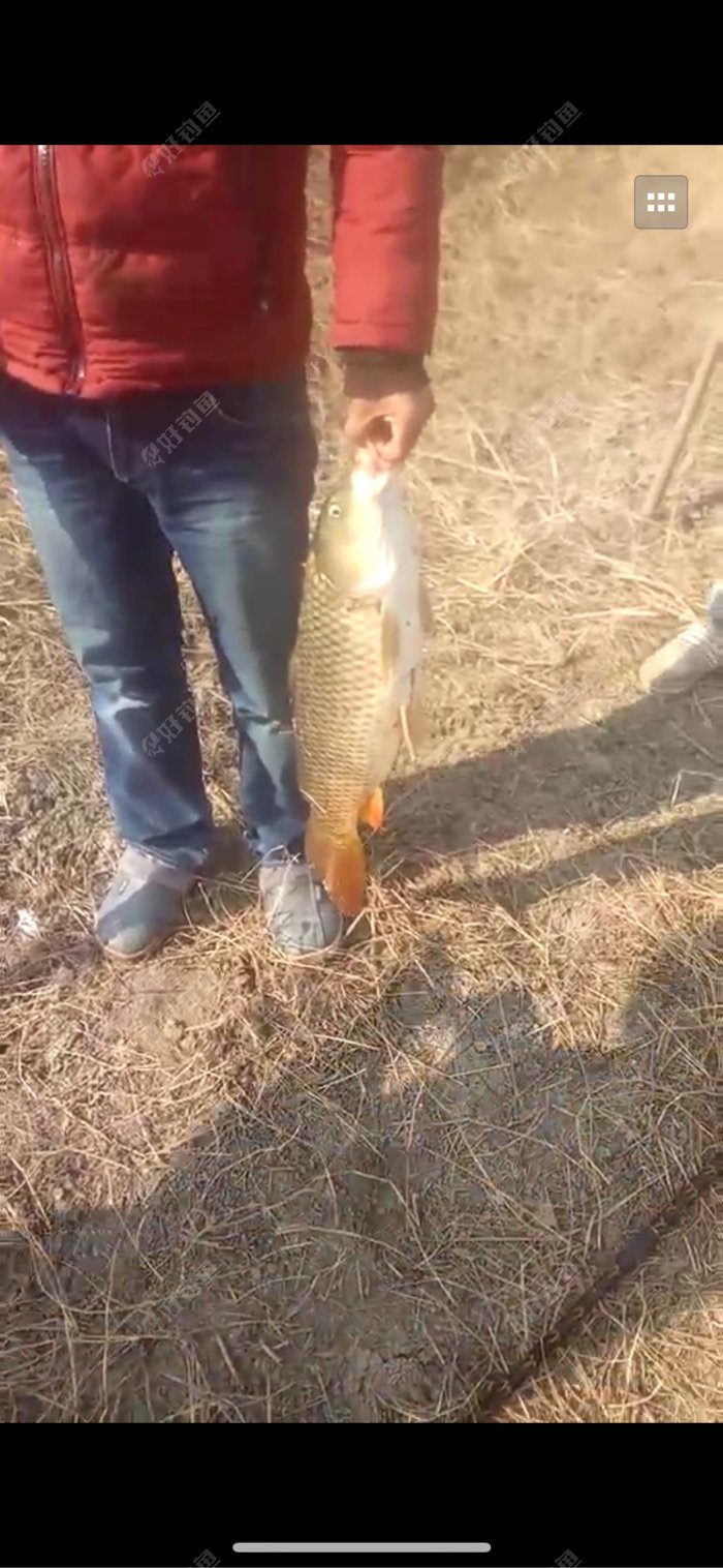 下午两点左右,我弟上了一条鲤鱼,还有个钓友也上了一条鲤鱼,都是一斤左右,他们都在嘲笑我,说就我钓不到鲤鱼。我心里有点慌,而且今年以来,跟他们一起出钓,我就跑了两条鲤鱼,一条草鱼,都是硬拎导致的子线断掉跑鱼。所以我有大鱼跑鱼恐惧症了。 说时迟那时快,我的漂黑了,我以为又是小白条拖走了,随手一提。感觉像挂底了。不过手感不对,有东西在动。中大鱼了!我赶紧喊我弟过来帮忙,他有钓大鱼经验,让他帮我溜鱼,我去拿抄网。我的鱼竿11米,加上线组,有16米,足够大鱼折腾。溜了大概十几分钟才看到鱼,一条大鲤鱼。最后被溜翻肚子了,拉到岸边抄网搞起来。 这是我钓过最大的鱼,而且是野钓!野河里面的大家伙,力道惊人,如果是夏天,这线组早就断了。快天黑的时候同来的钓友还钓了一条1.1斤大鲫鱼!