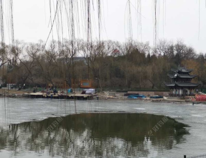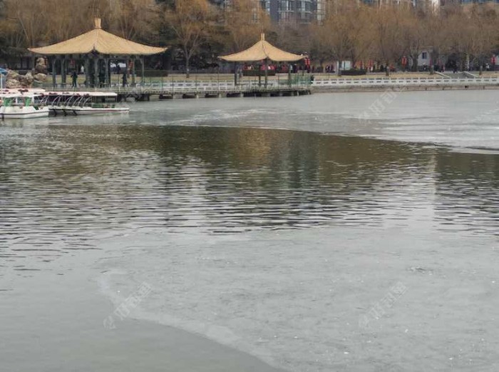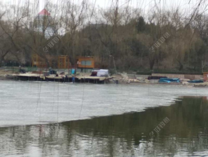 今天到公园遛弯,看到冰封许久的冰面己经露出了部分水面,好高兴呵!