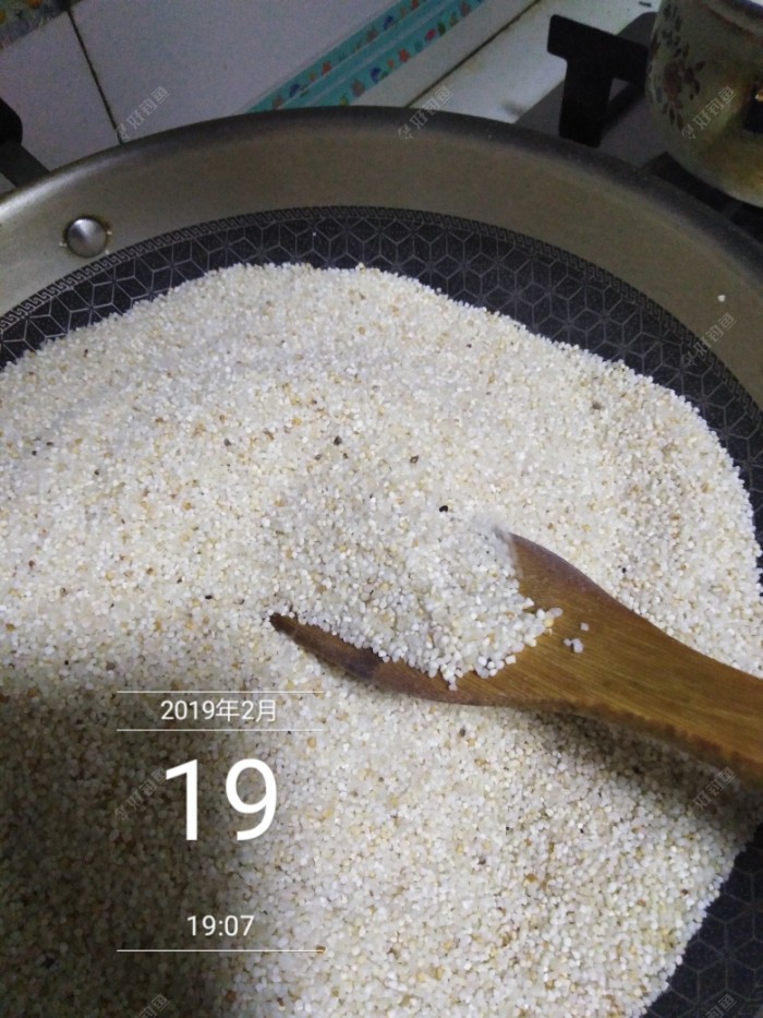 接着一个重要的环节就是炒制碎米去除水份,这一步的目的是为了让碎米能更好的吸收窝料制剂,在打窝的时候能够更加持久的散发味道,从而提升诱鱼的效果。