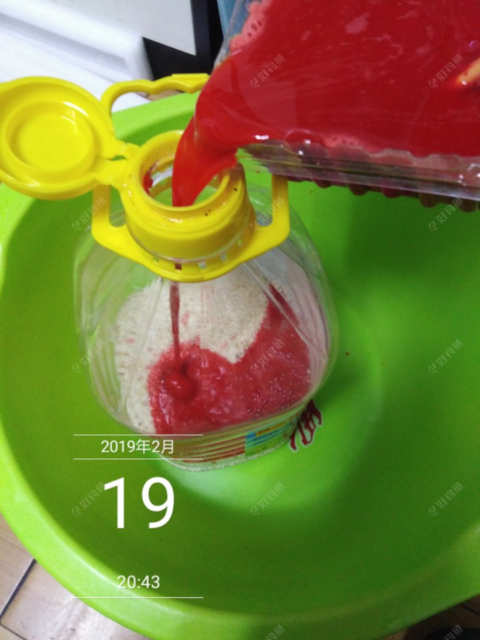 那接下来就该灌制剂了,还别说,这个塑料盒子大小,角度都挺合适的,液体也都一滴不漏的灌进油桶了?